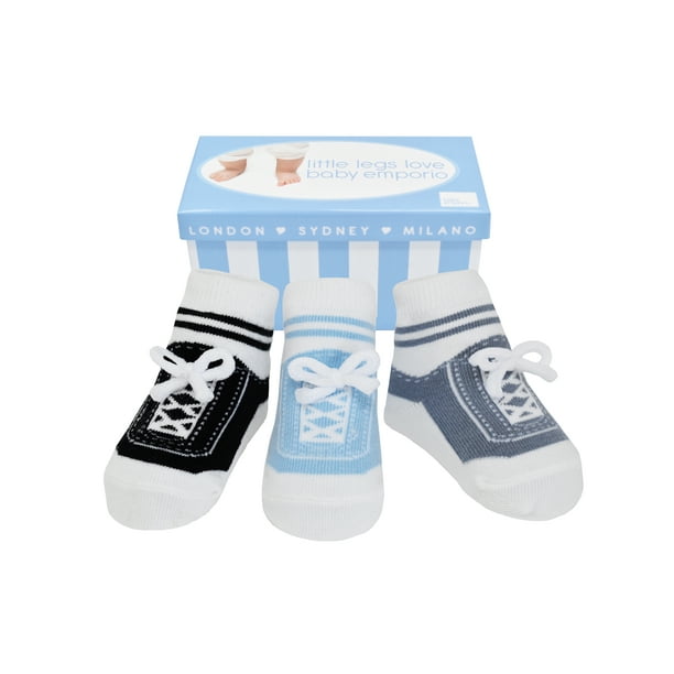 Baby Emporio Baby Socks With Shoe Look 3 Pr Cotton Shoelaces Gift Box 0 12 Months Little Steps Walmart Com